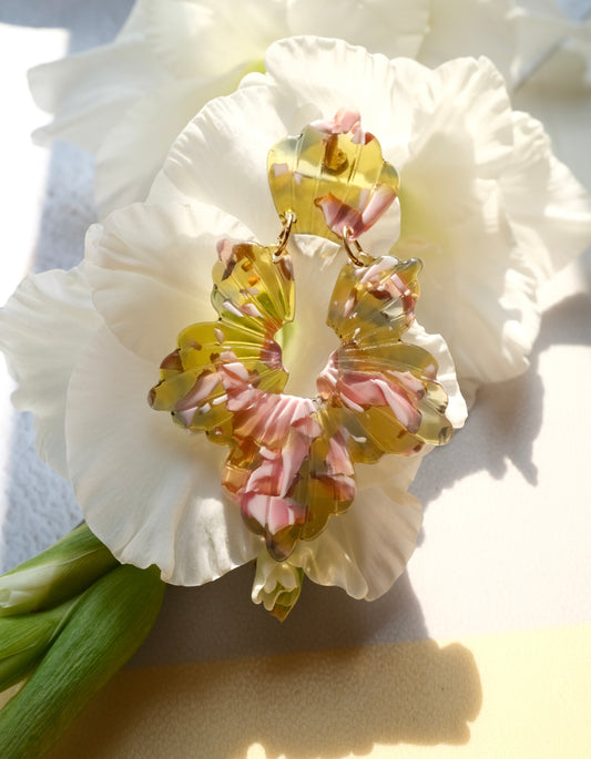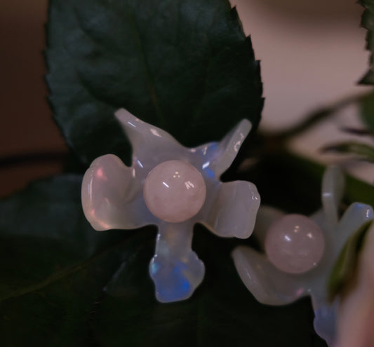 PEARL WHITE ROSE QUARTZ BLOSSOM BUTTON EARRINGS